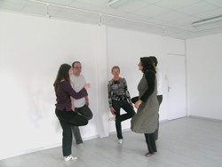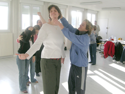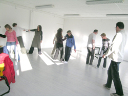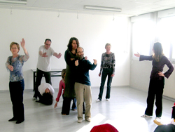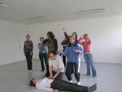 Les participants sont deux par deux, l'un ferme les yeux et se laisse manipuler