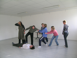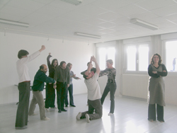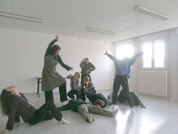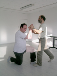 par l'autre comme une marionnette. Pas de paroles, du contact. Déplacements
