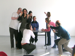 le groupe de cour entre et compose l'image correspondant à la réplique.